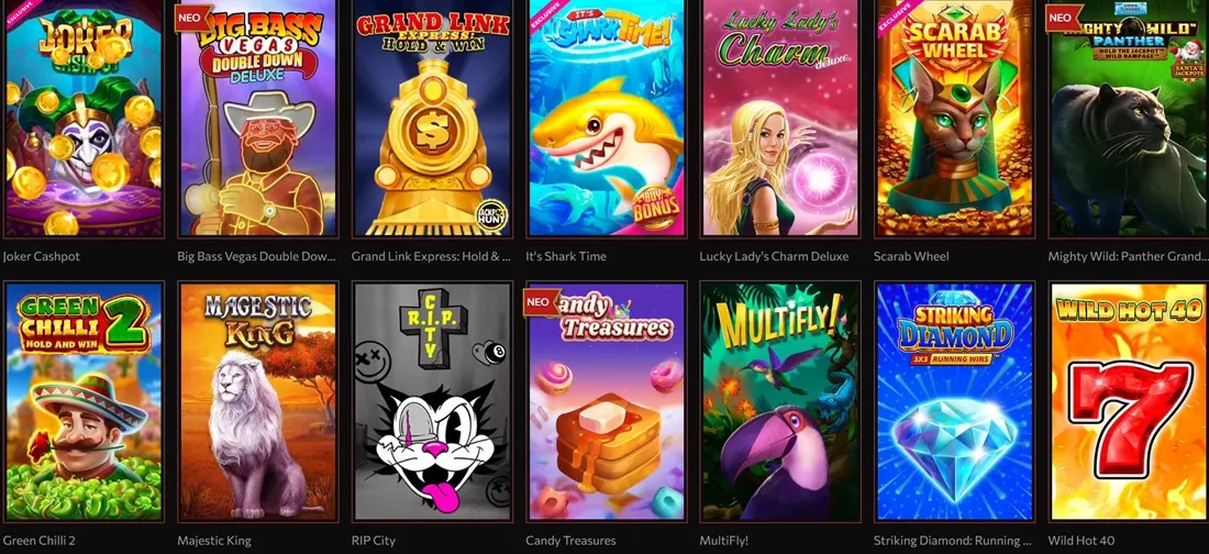 | Πάροχοι | Ανάμεσα στους 83 παρόχους είναι και οι συμπεριλαμβανομένων των Microgaming, Spinomenal, KAGaming, Evolution, Red Tiger, Pragmatic Play, Yggdrasil, Play n’ Go, κ.ά. |